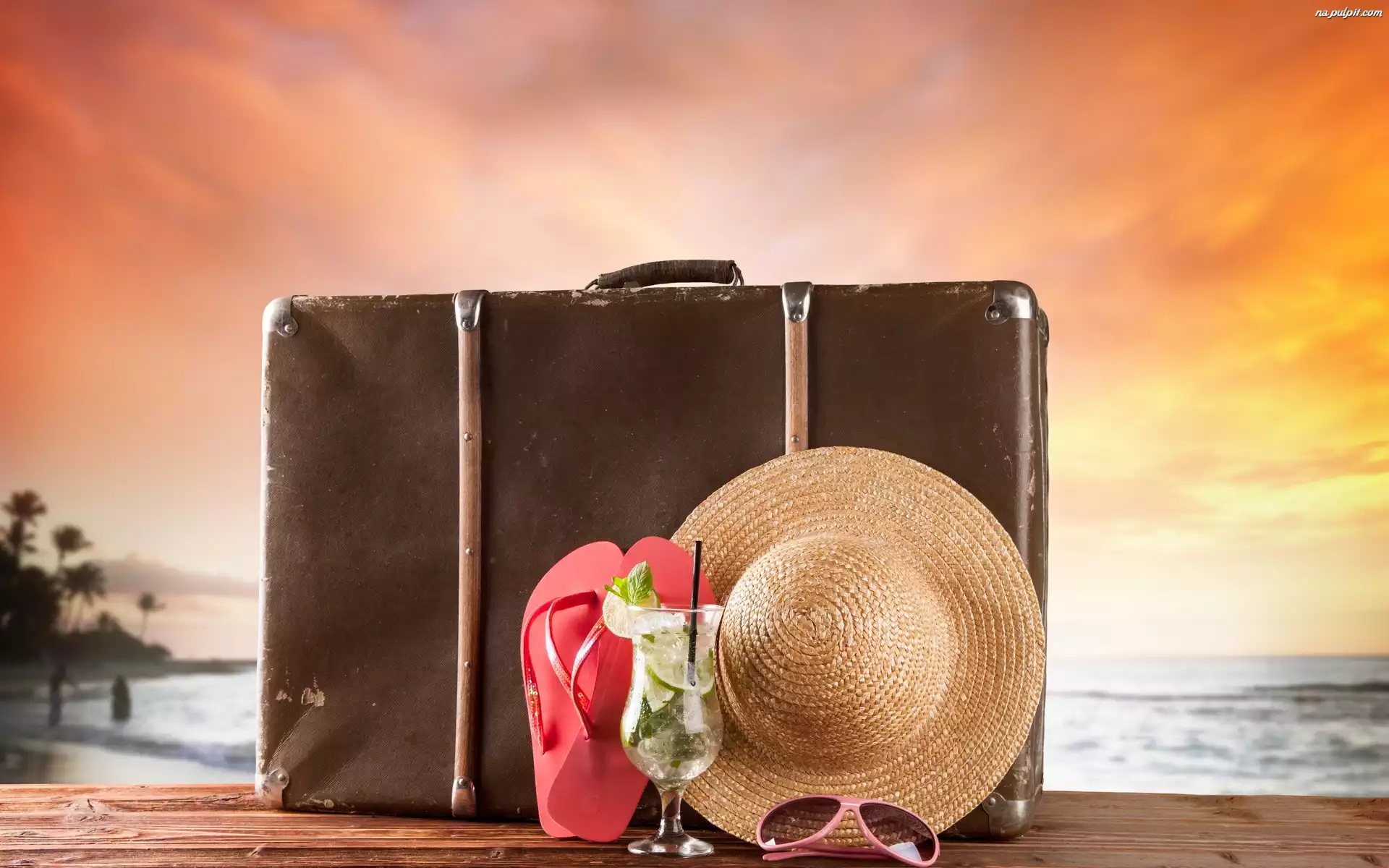 Wakacje, Walizka, Morze, Lato, Kapelusz Na Pulpit