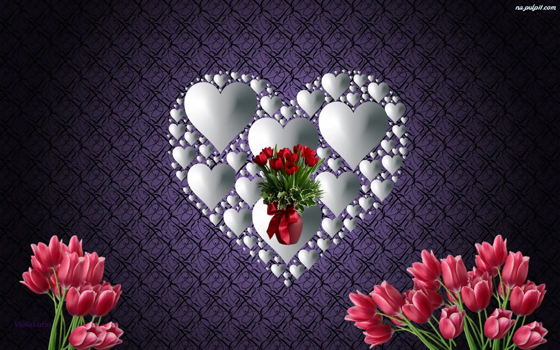 Walentynki, Serce, Miłość, Grafika, Tulipany Na Pulpit