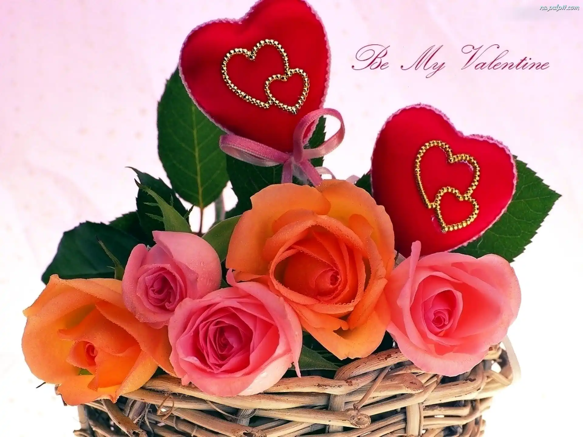 Walentynki, Róże, Kolorowe, Koszyk, Serduszka Na Pulpit