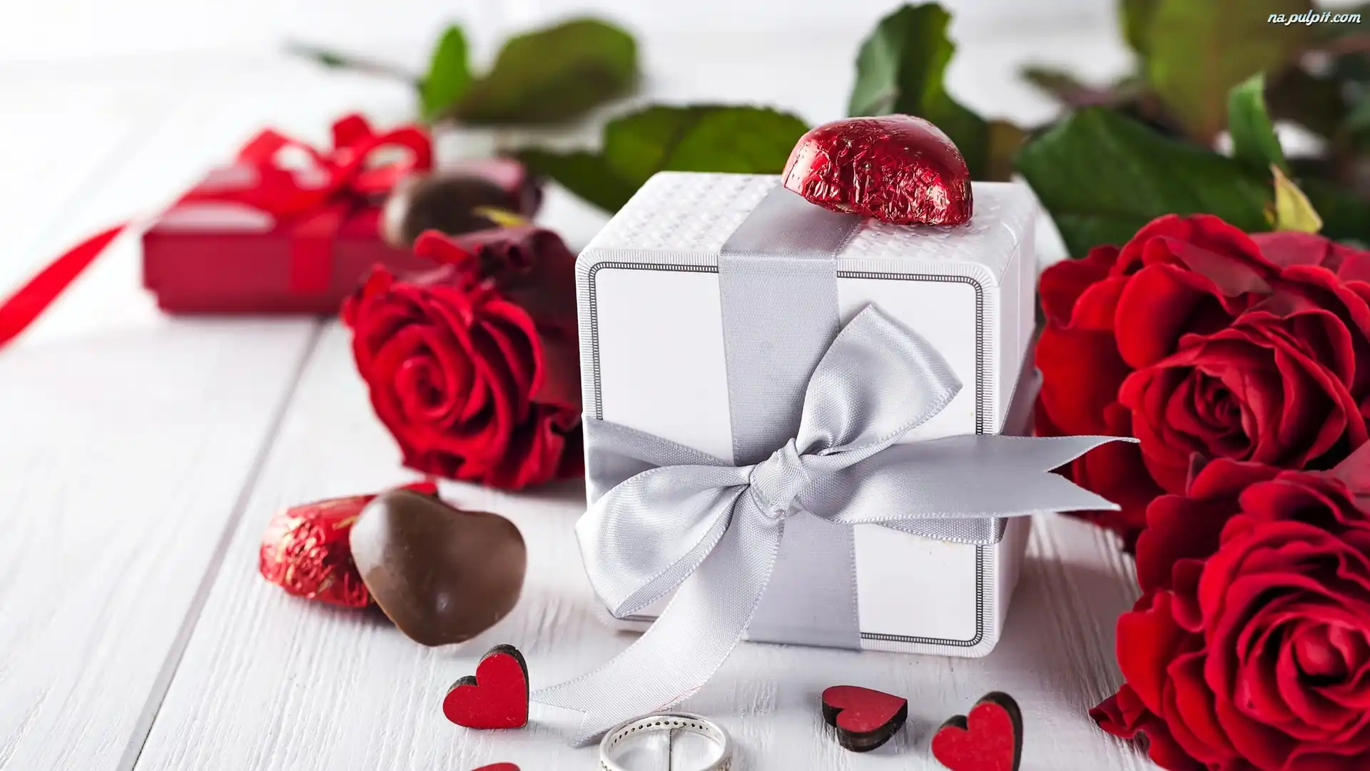 Walentynki, Czekoladki, Prezent, Róża, Serca Na Pulpit