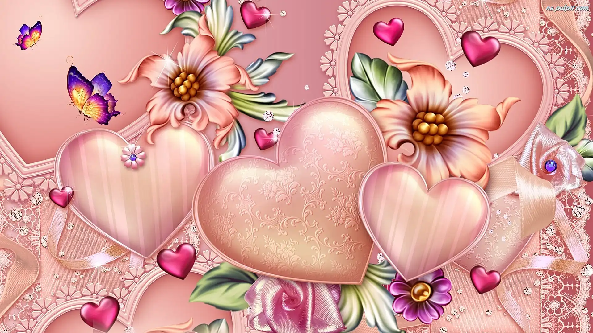 Walentynki, Serca, Różowe, Art Na Pulpit
