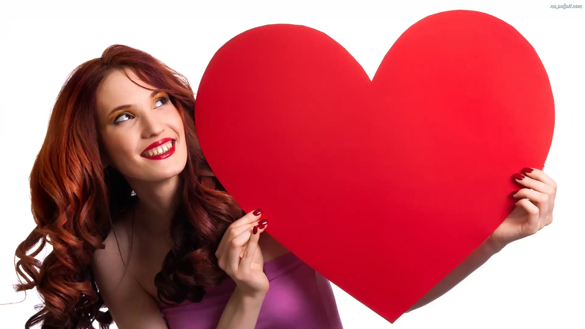 Walentynki, Kobieta, Uśmiechnięta, Serce