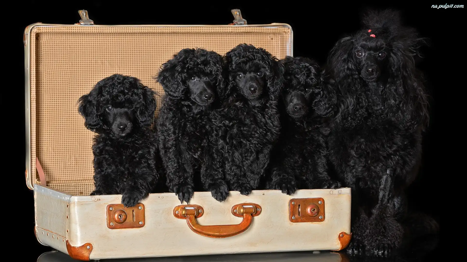 Pudle, Czarne, Psy, Walizka Na Pulpit