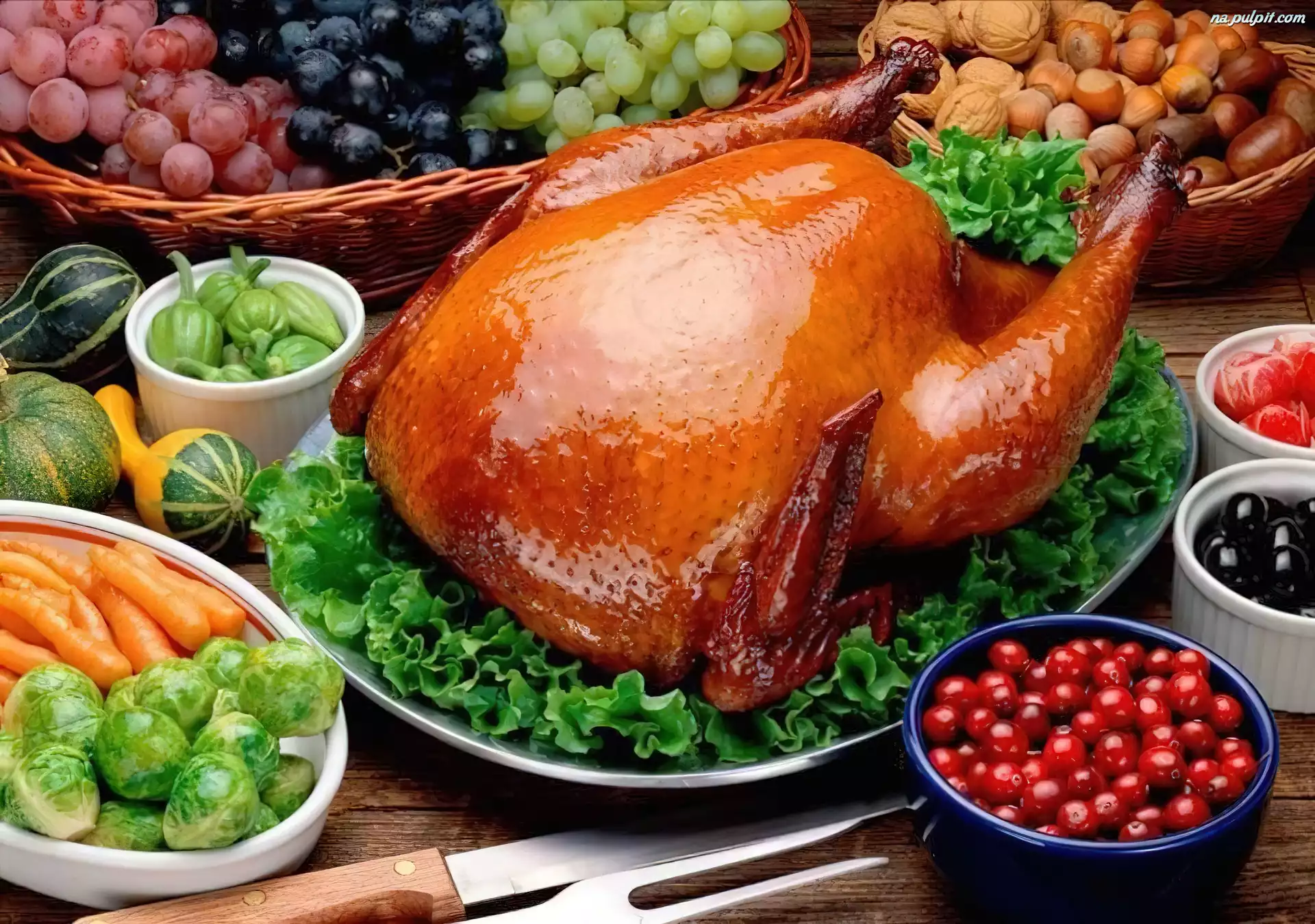 Warzywa, Kurczak, Pieczony, Owoce Na Pulpit