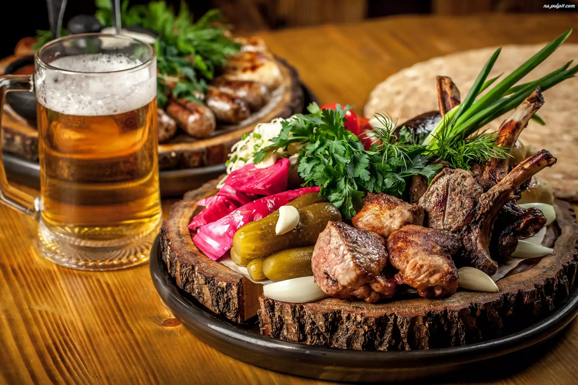 Warzywa, Kufel, Piwo, Mięso Na Pulpit