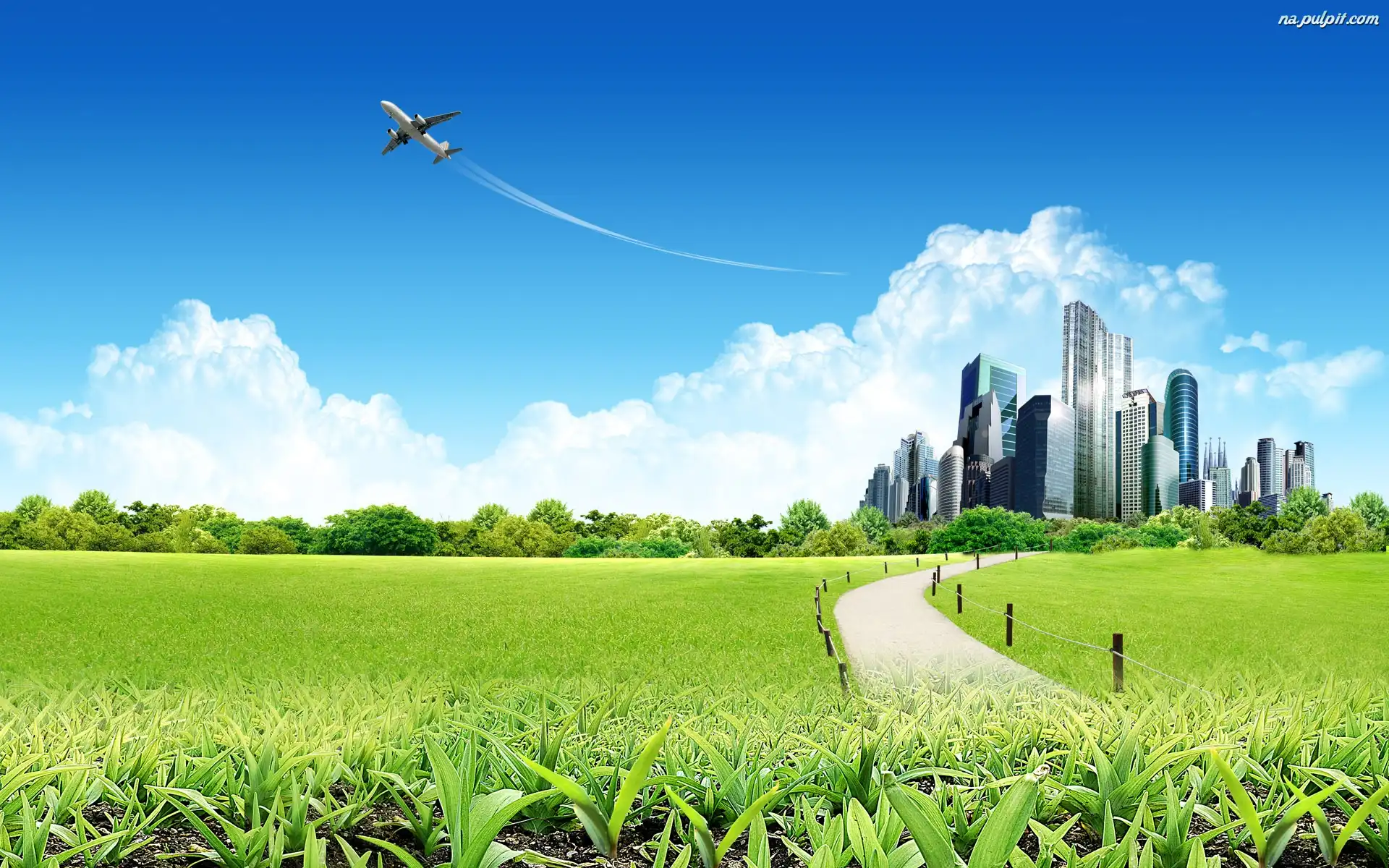 Wąska, Chmur, Samolot, Dróżka, Łąka, Drapacze Na Pulpit