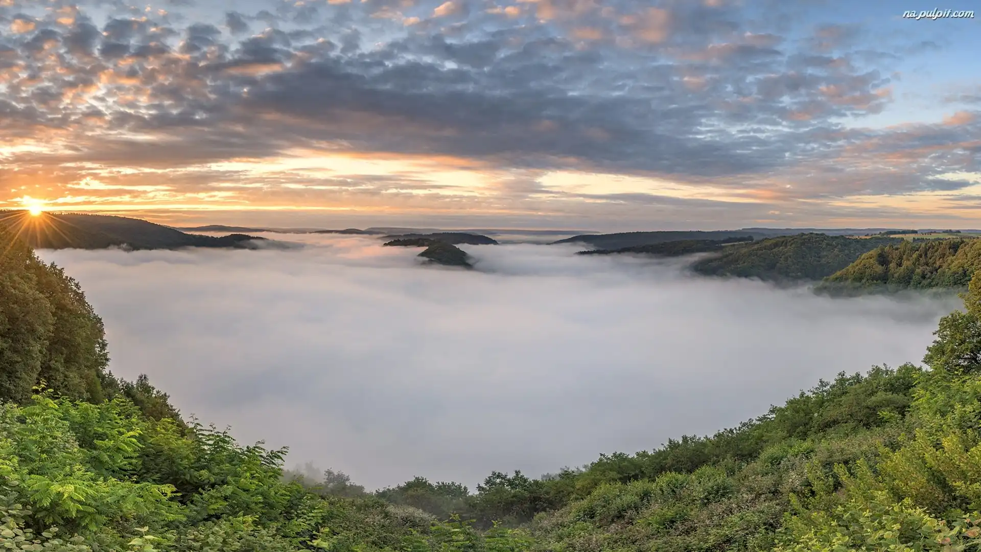Saarschleife, Drzewa, Mgła, Wąwóz, Wzgórza, Niemcy Na Pulpit
