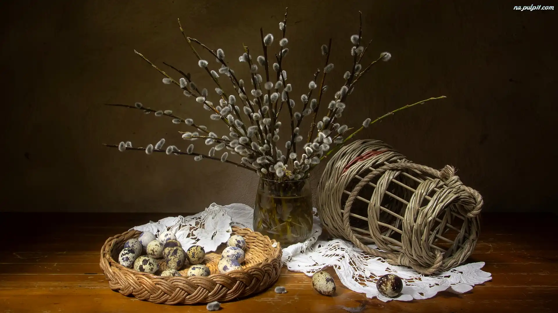 Wazon, Stół, Kompozycja, Koszyk, Bazie, Jajeczka Na Pulpit