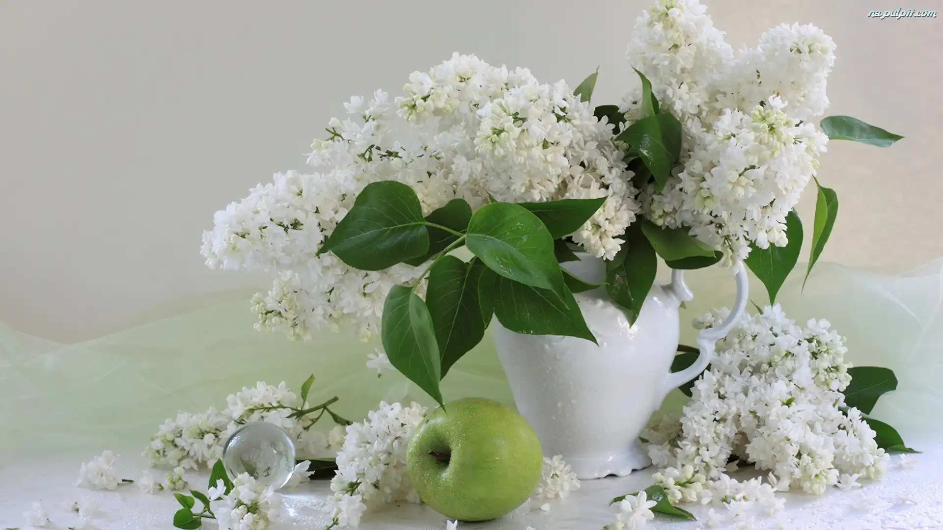 Wazon, Bzy, Białe, Jabłka Na Pulpit
