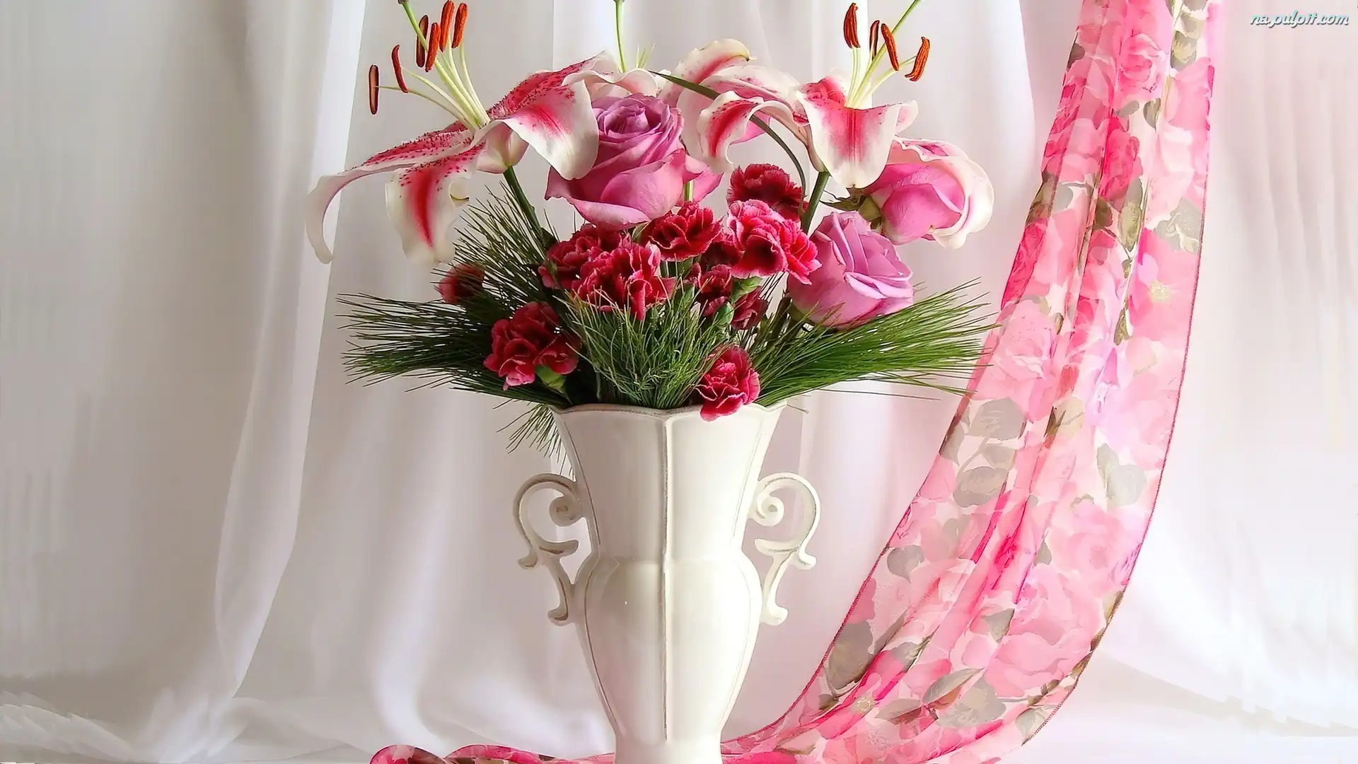 Wazon, Kolorowy, Szal, Bukiet, Biały, Kwiatów