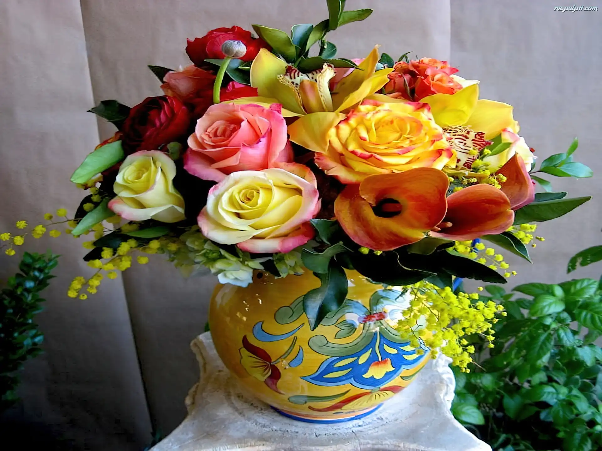 Wazon, Kwiatów, Bukiet, Kolorowy Na Pulpit