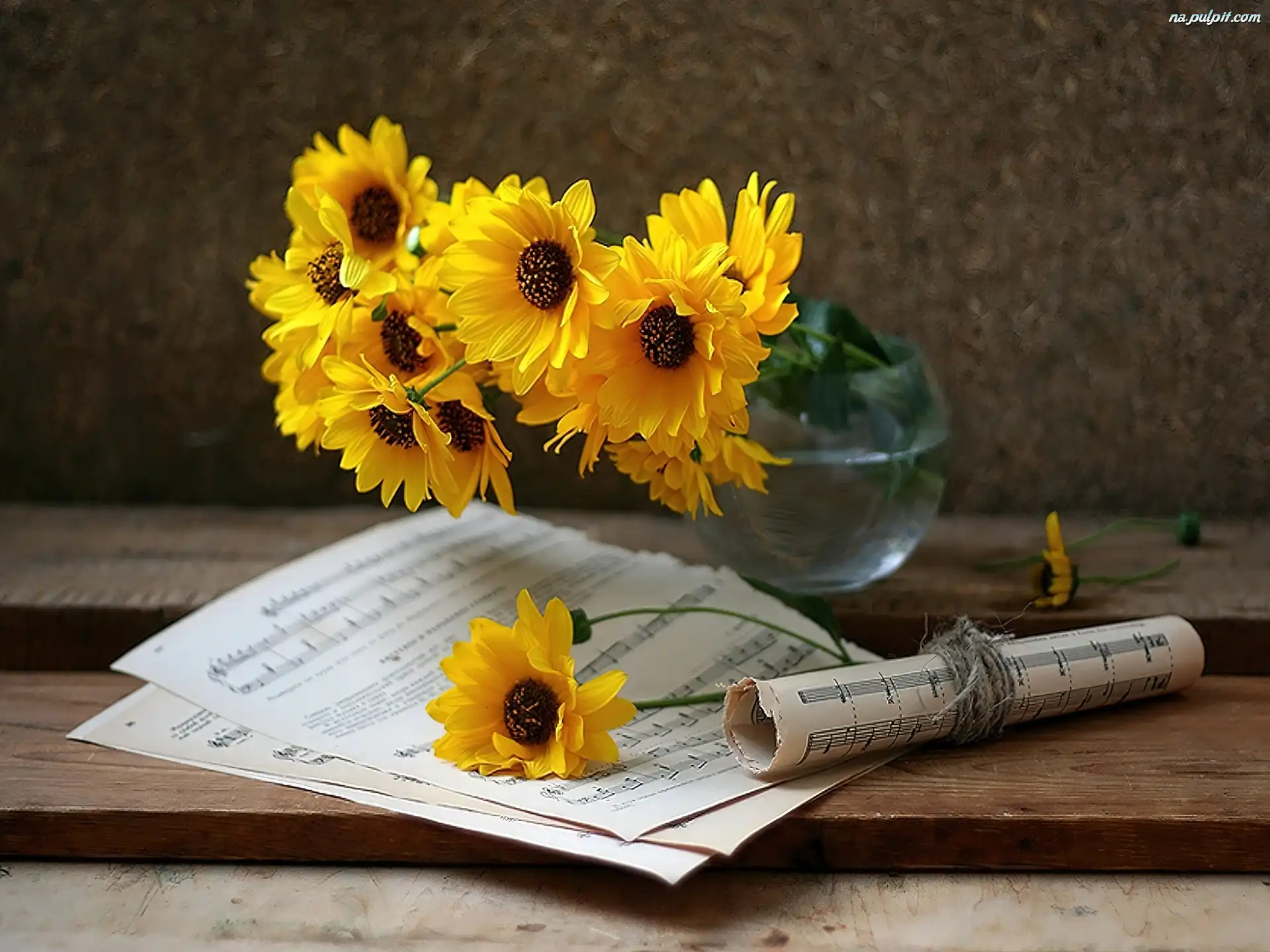 Wazon, Kwiatów, Żółtych, Bukiet, Nuty Na Pulpit