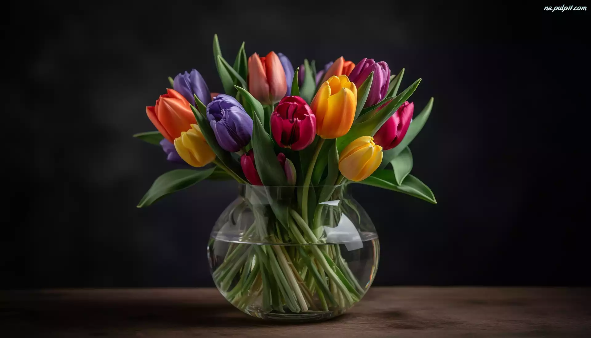 Bukiet, Kolorowe, Tulipany, Wazon Na Pulpit