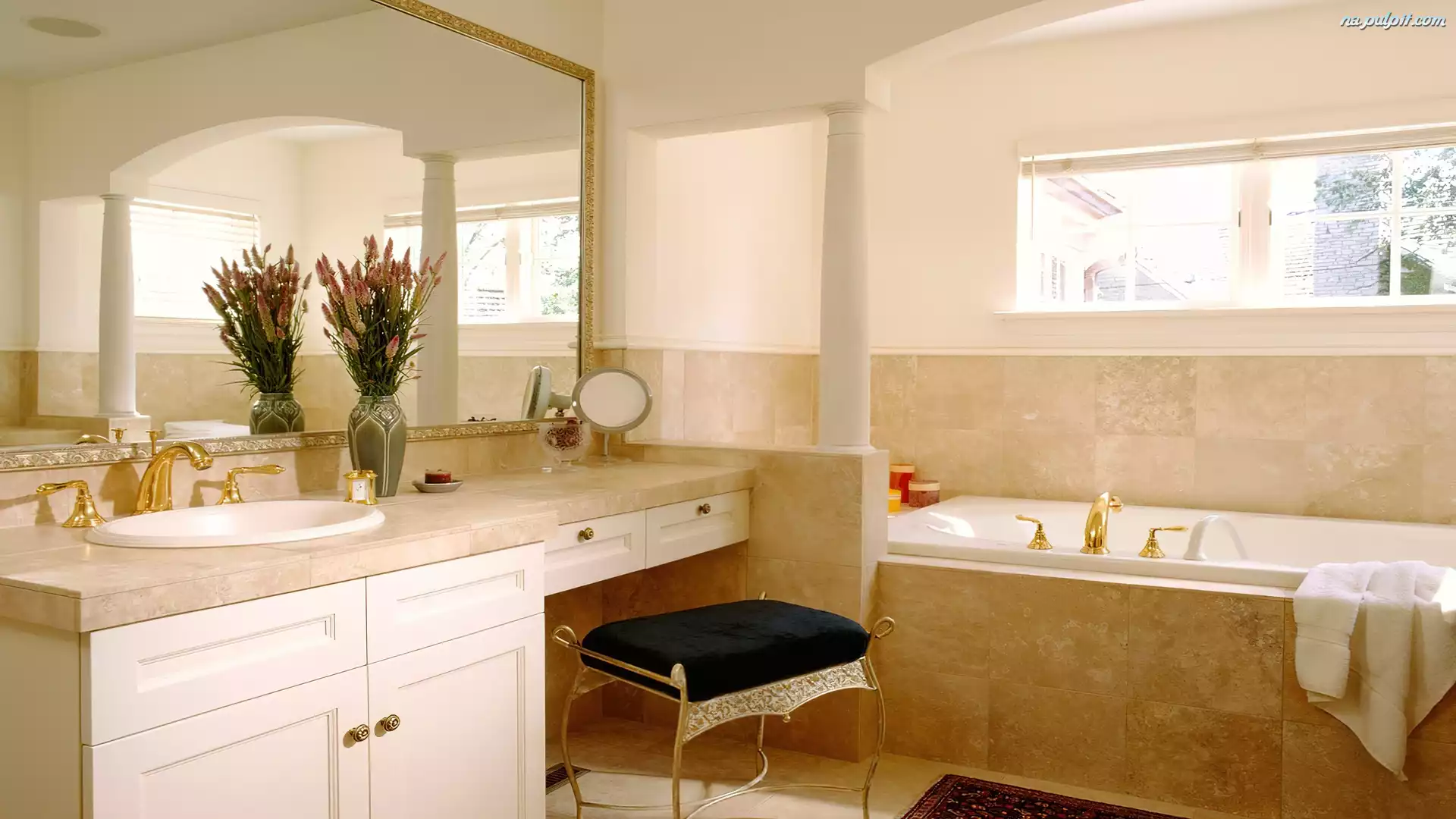 Wazon, Łazienka, Elegancka, Lustro Na Pulpit