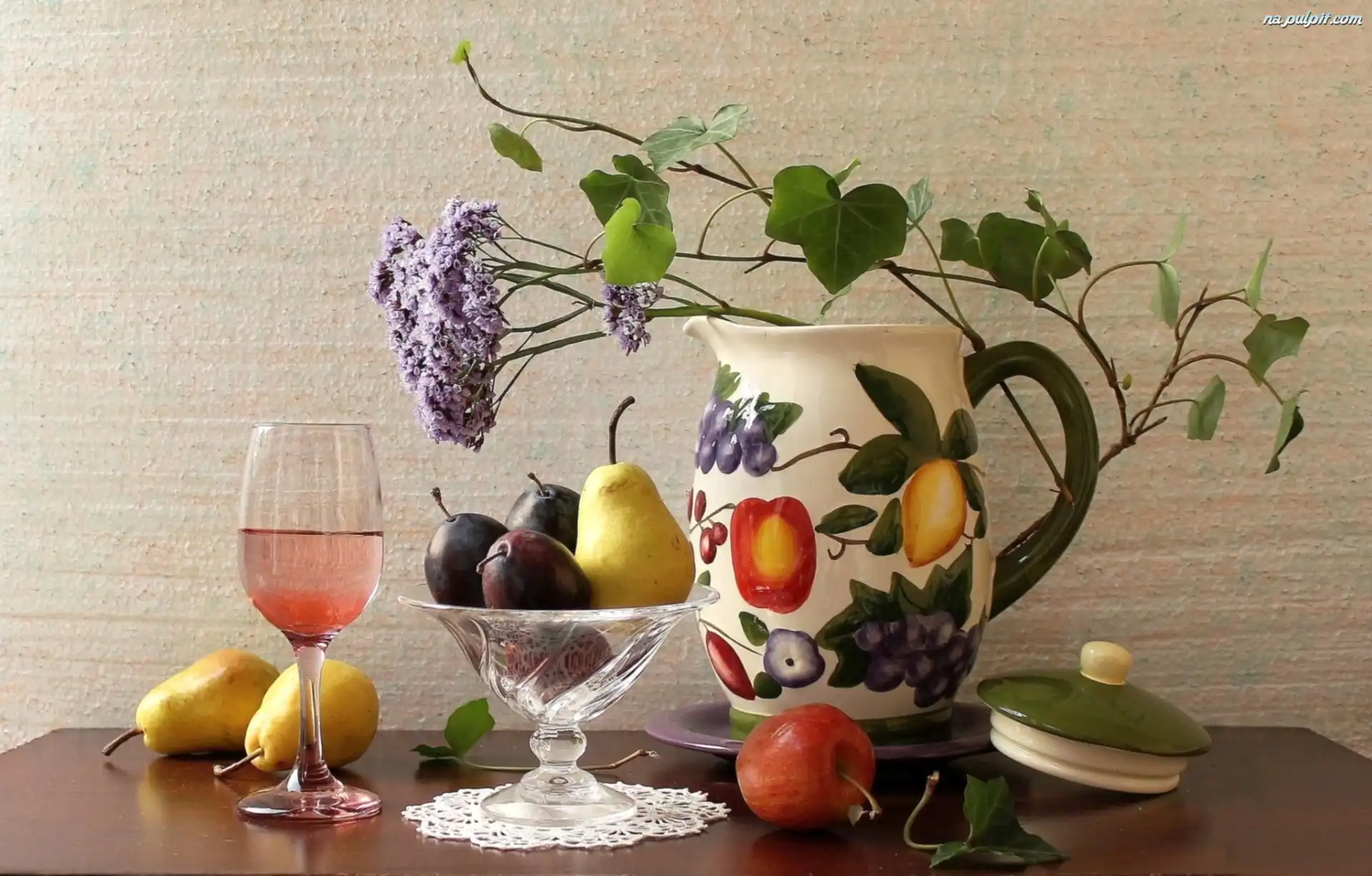 Wazon, Śliwki, Jabłka, Gruszki, Kieliszek