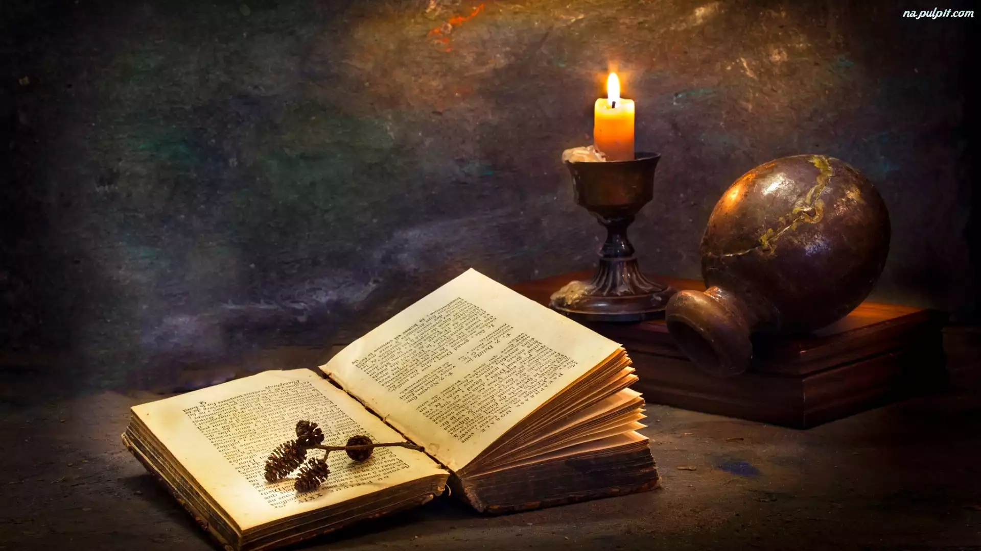 Wazon, Książka, Kompozycja, Świeca Na Pulpit