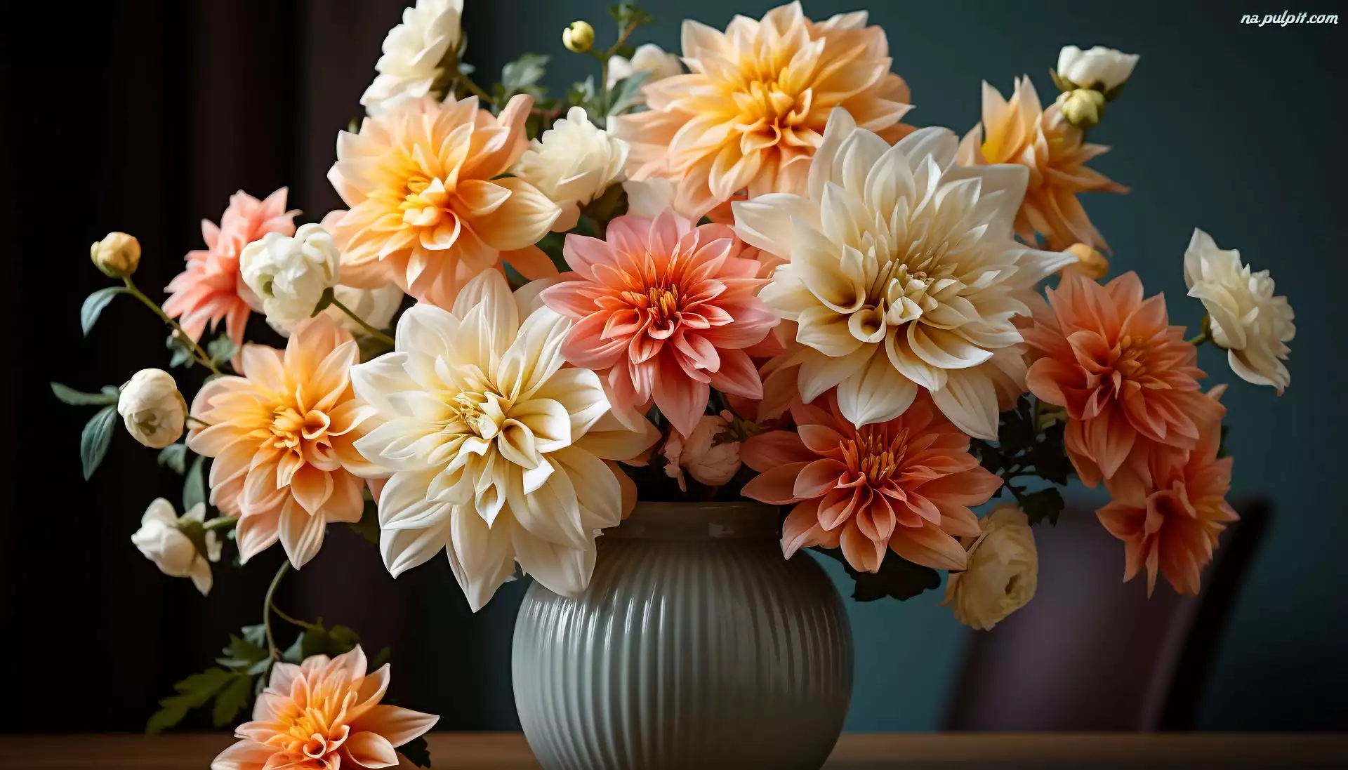 Kwiaty, Bukiet, Dalie, Wazon Na Pulpit