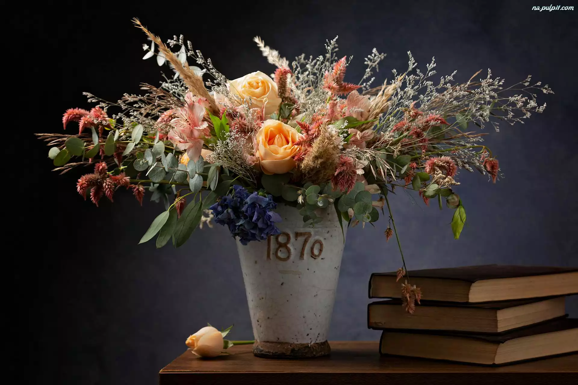 Kwiaty, Bukiet, Książki, Wazon Na Pulpit