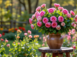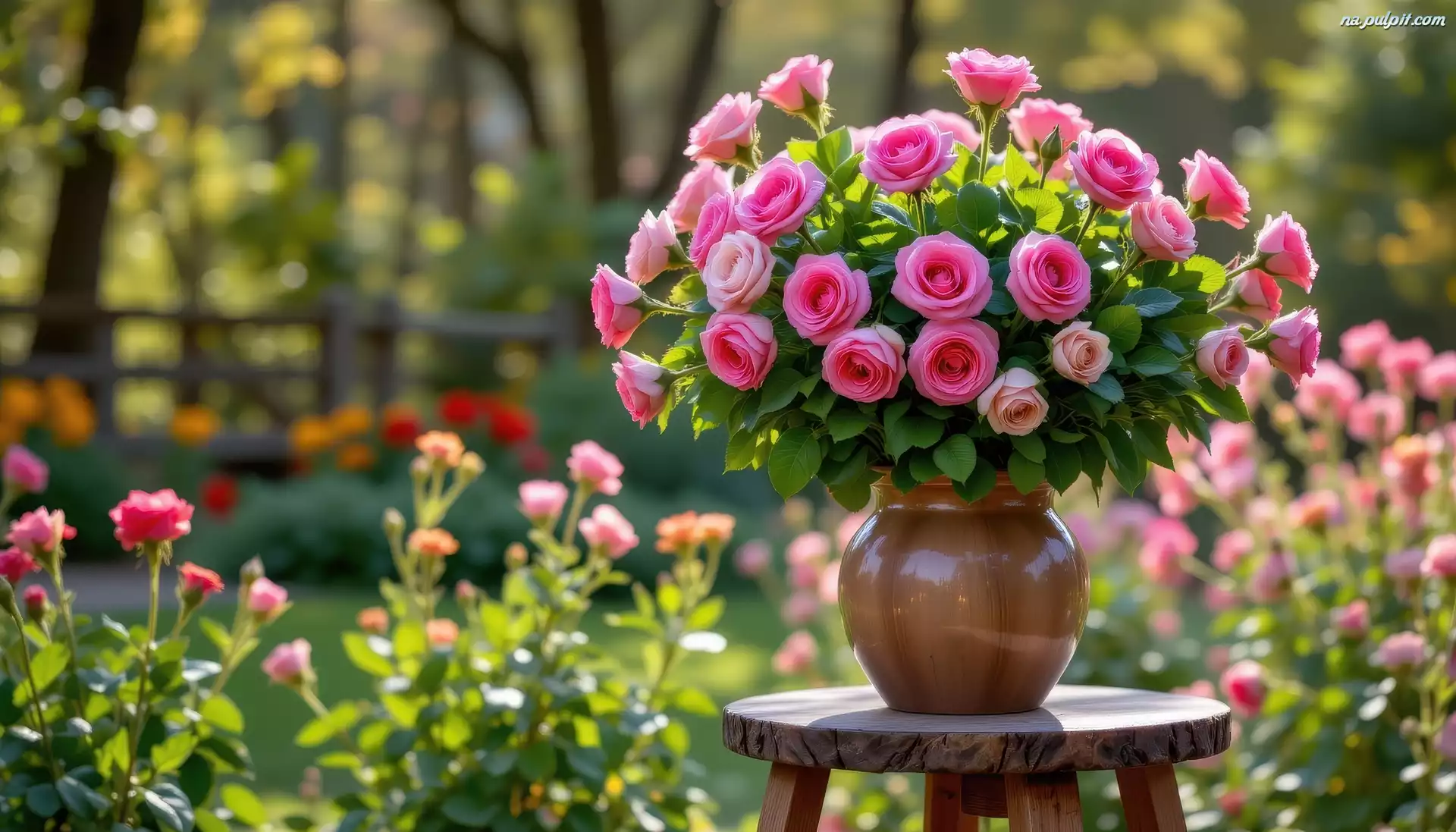 Kwiaty, Różowe, Róże, Wazon Na Pulpit