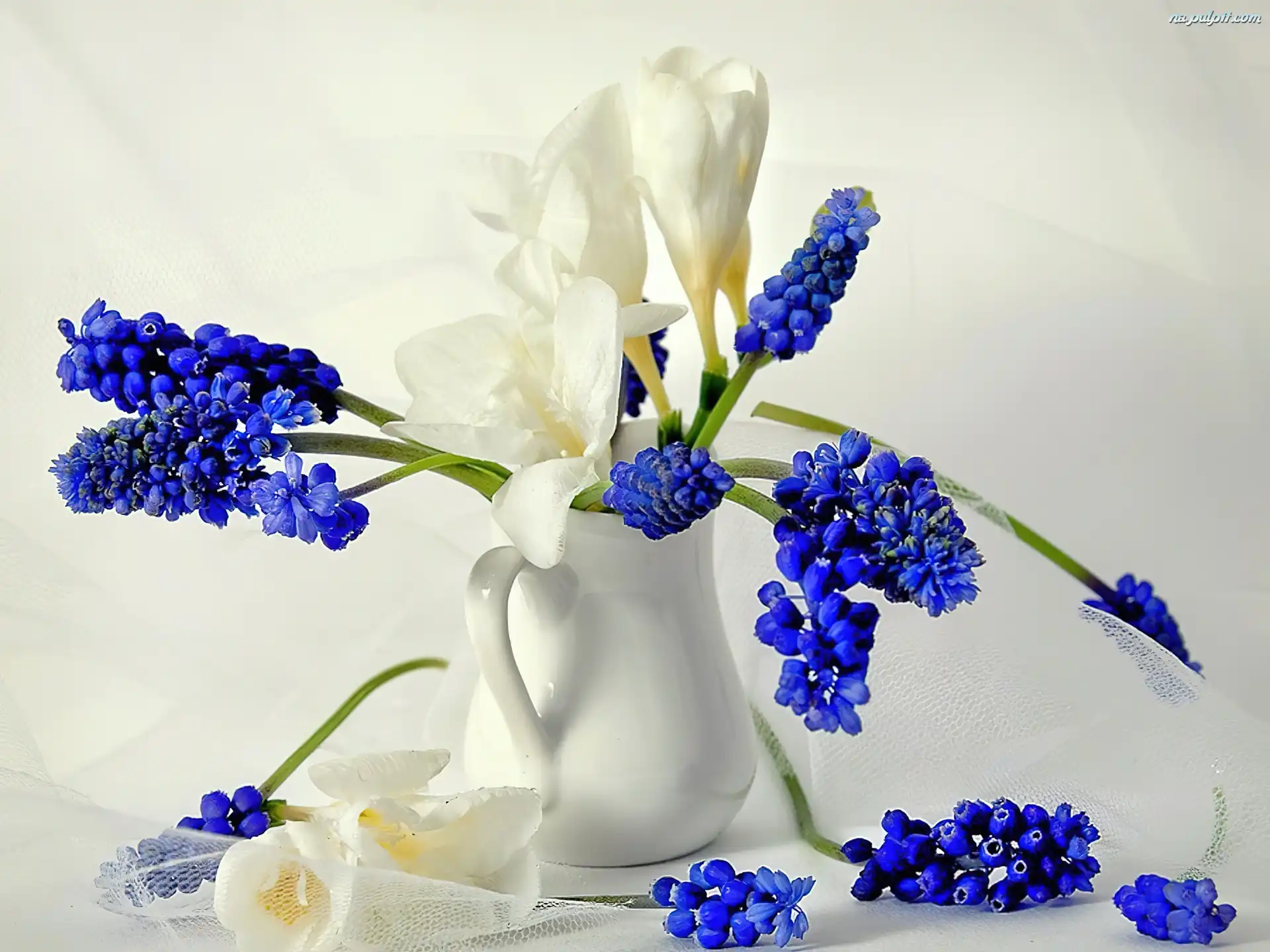 Wazon, Białe, Niebieskie, Kwiaty Na Pulpit