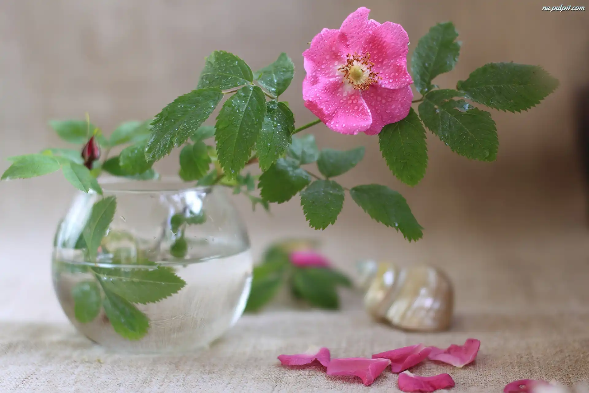 Wazon, Dzika, Różowa, Róża Na Pulpit