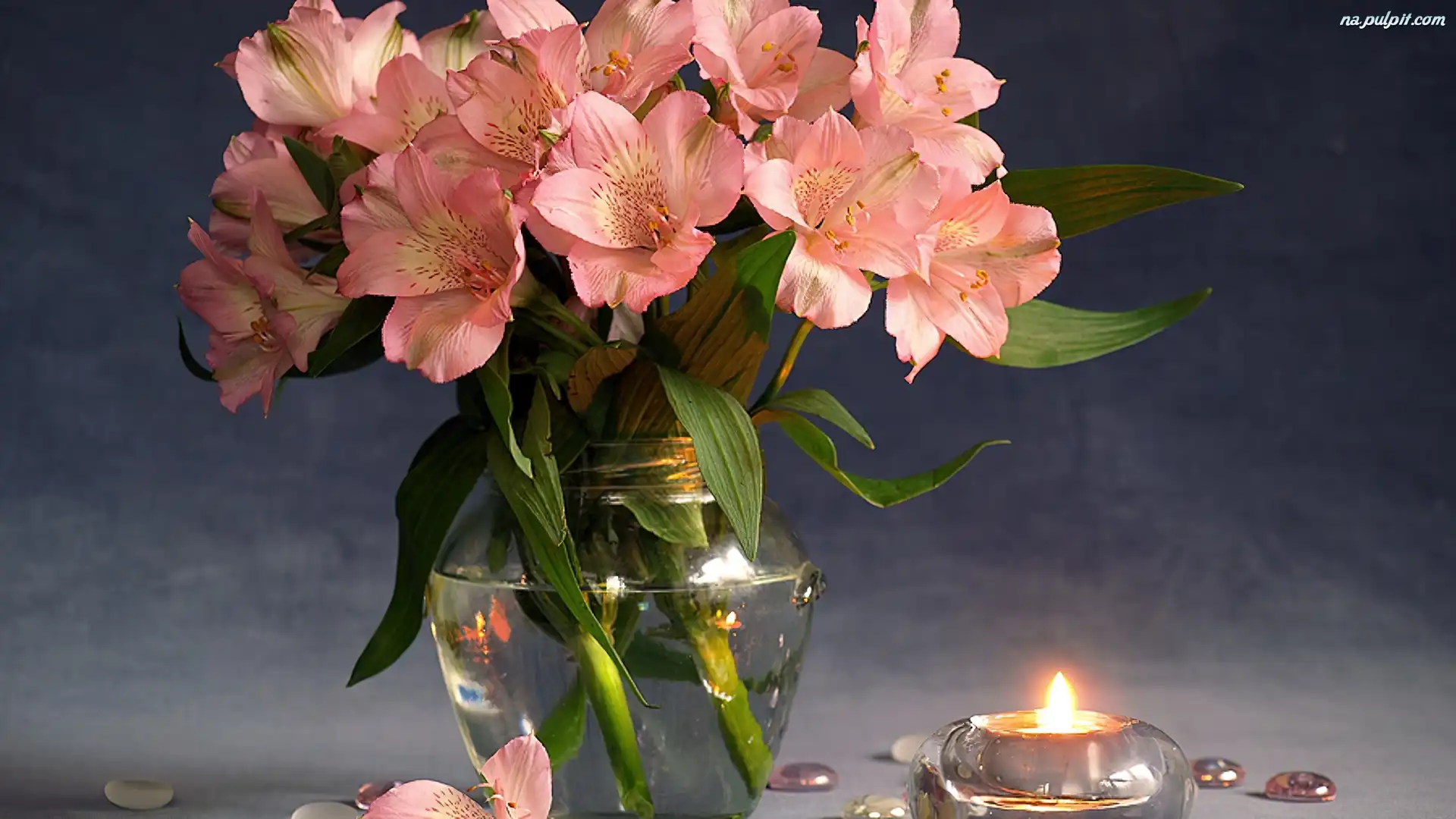 Świeca, Różowe, Wazon, Kwiaty Na Pulpit
