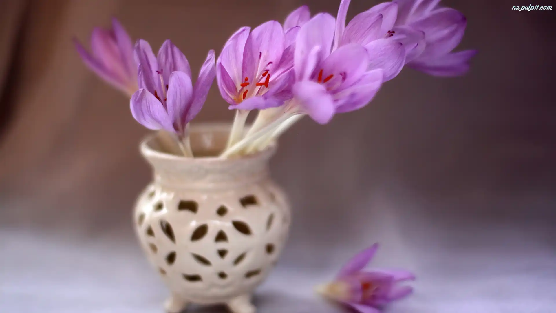 Krokusy, Wazonik, Fioletowe Na Pulpit