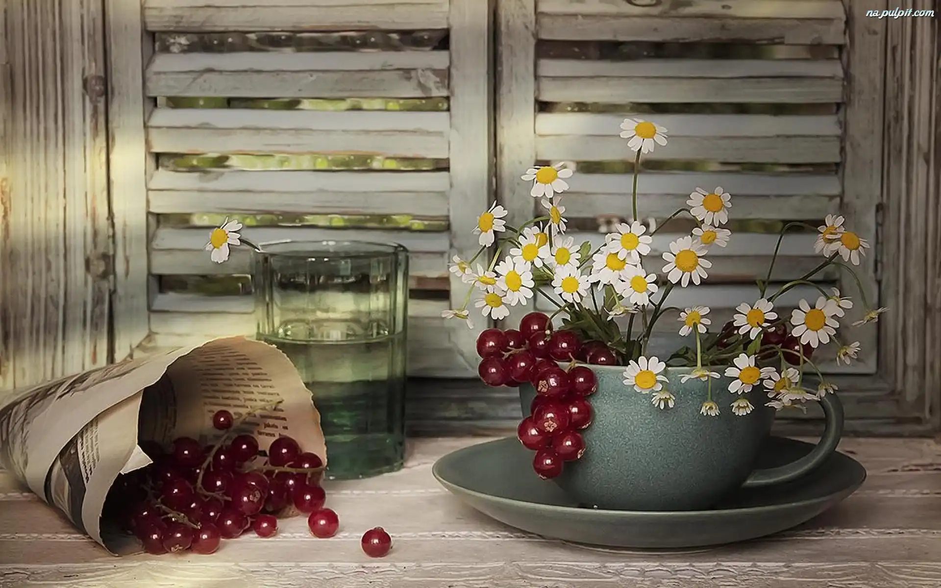 Wazonik, Porzeczki, Owoce, Kwiaty, Filiżanka Na Pulpit