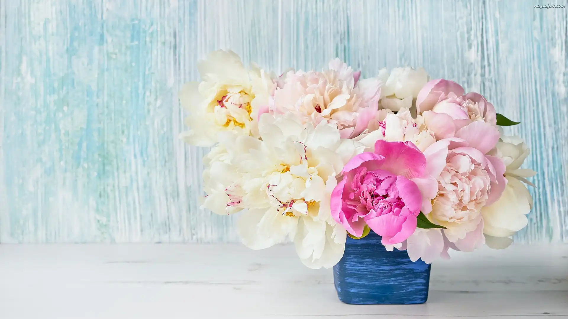 Wazonik, Bukiet, Piwonie, Niebieski