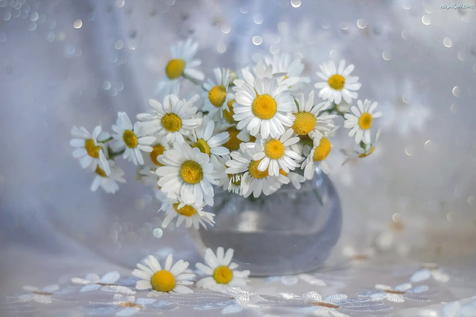 Wazonik, Kwiaty, Białe, Rumian polny, Bokeh