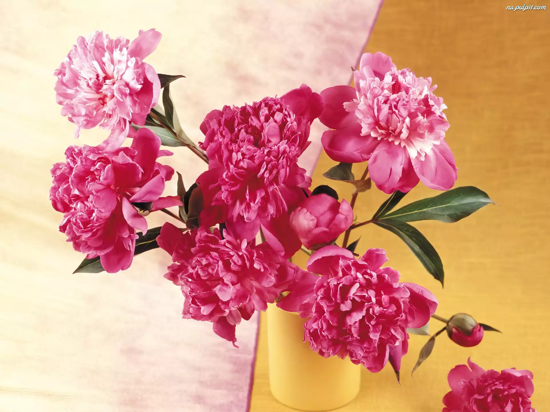 Wazonik, Piwonie, Różowe, Żółty