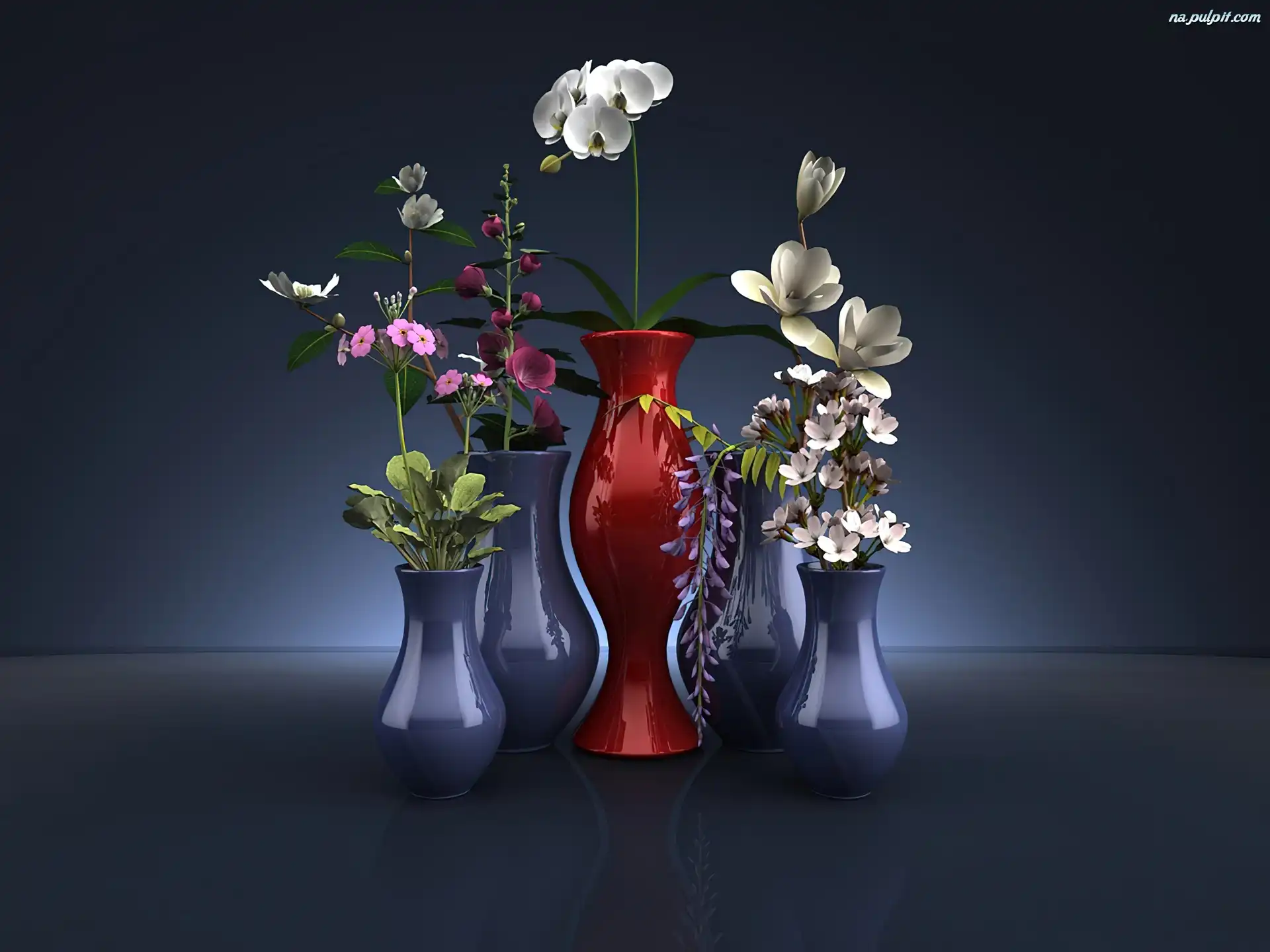 Wazony, Wazon, Czerwony, Kwiaty, Niebieskie Na Pulpit