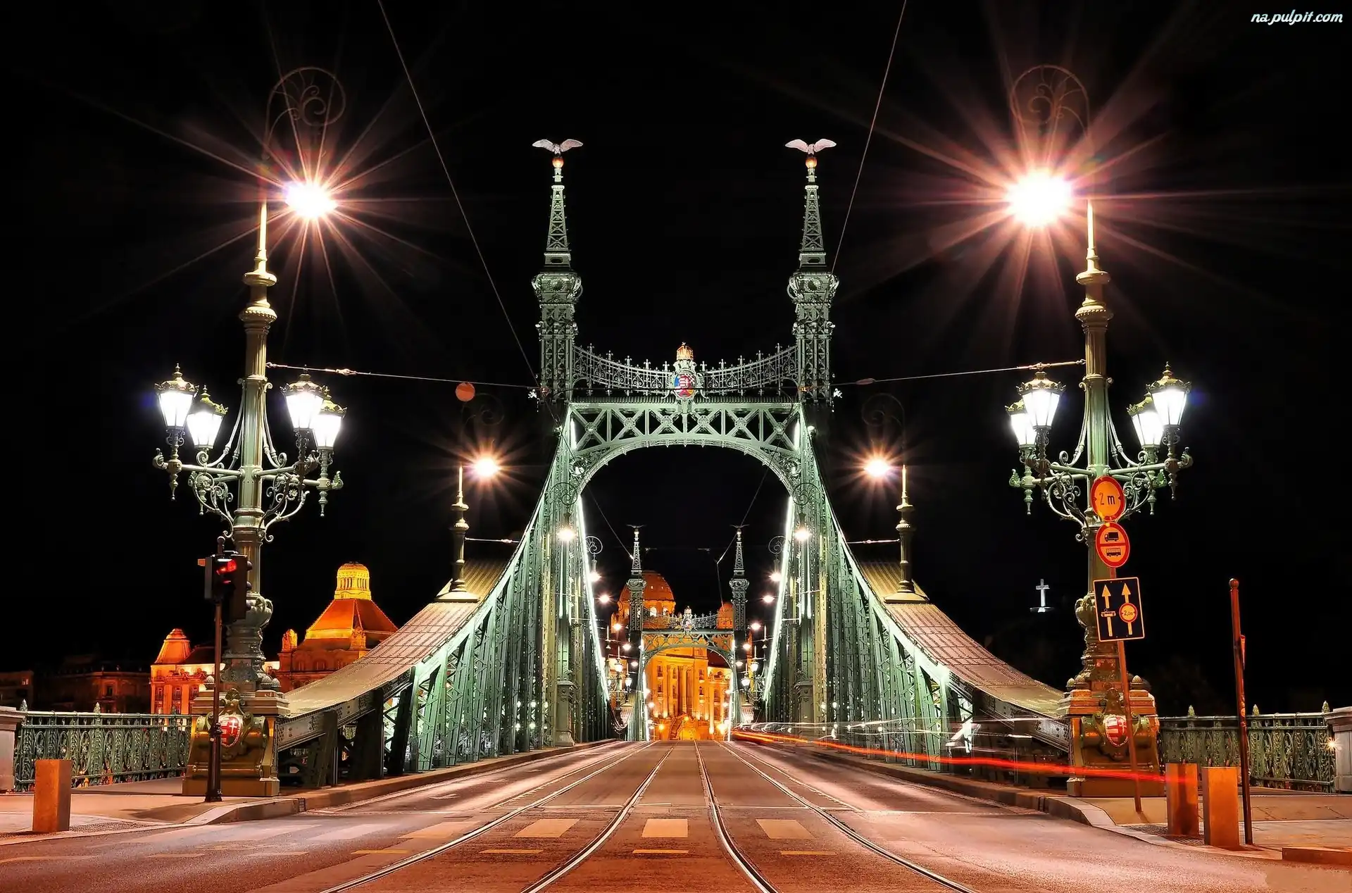 Węgry, Noc, Światła, Most, Budapeszt Na Pulpit