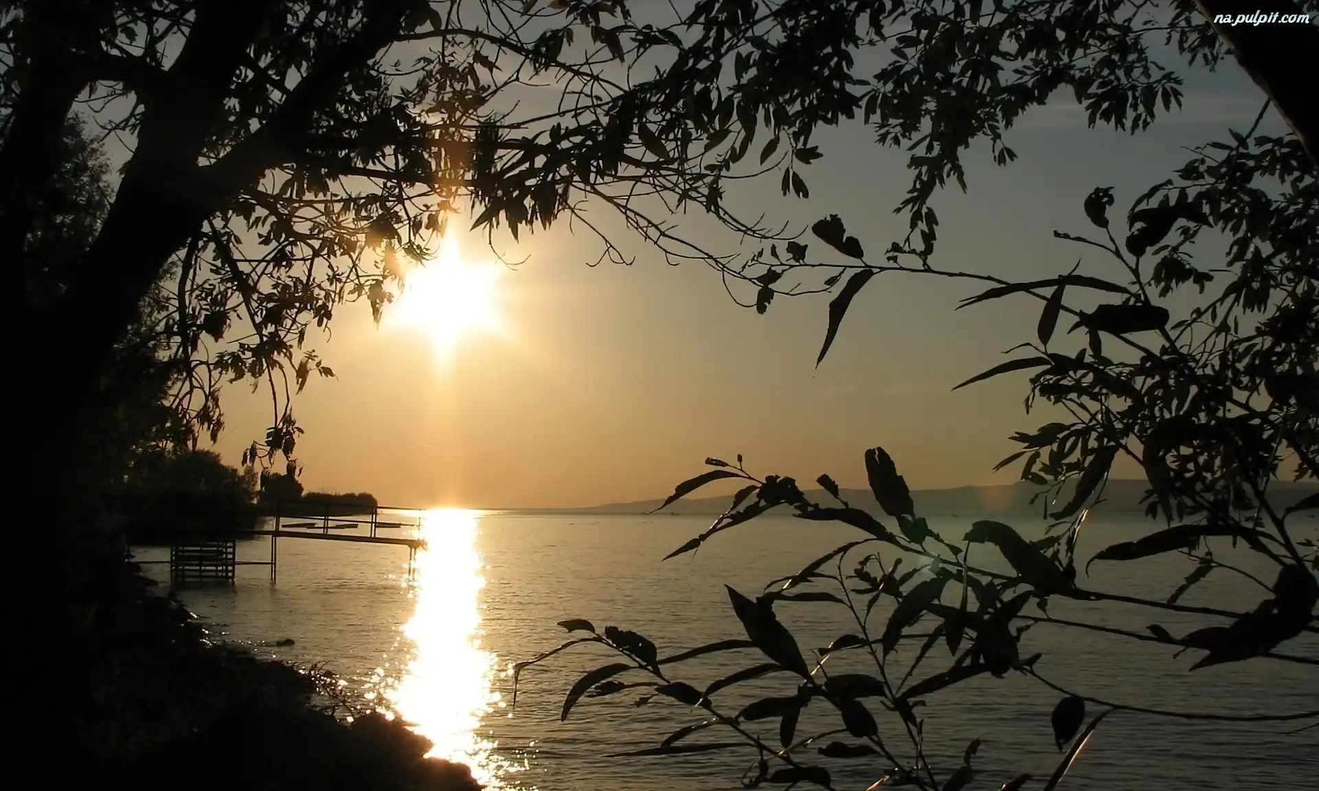Węgry, Jezioro, Słońca, Zachód, Balaton Na Pulpit
