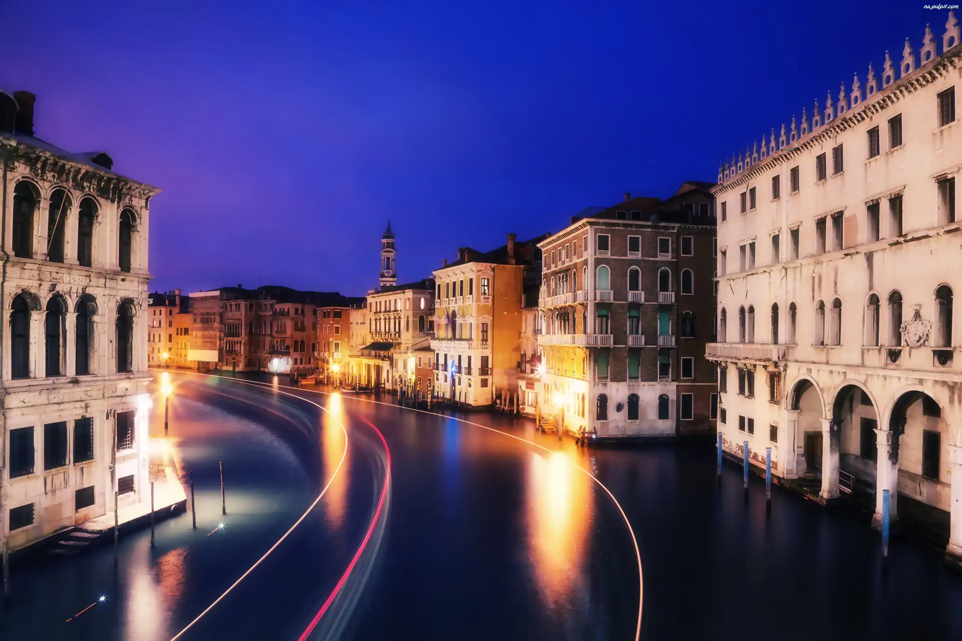 Wenecja, Domy, Ulica, Miasto nocą Na Pulpit