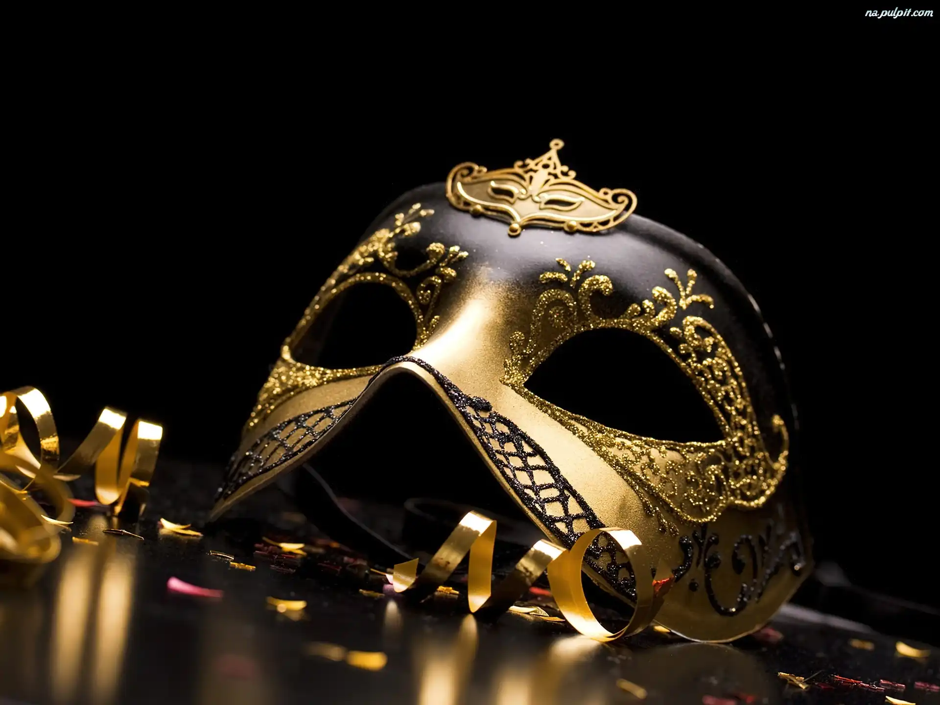 Wenecka, Złota, Czarno, Maska Na Pulpit