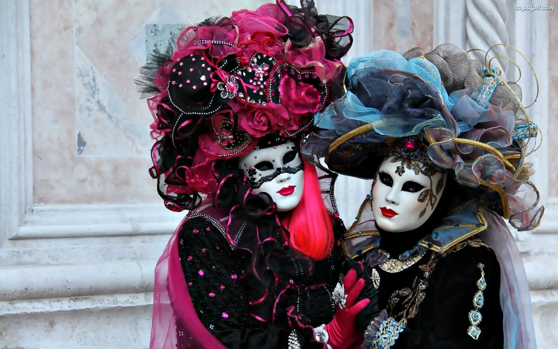 Weneckie, Kobiety, Dwie, Maski Na Pulpit