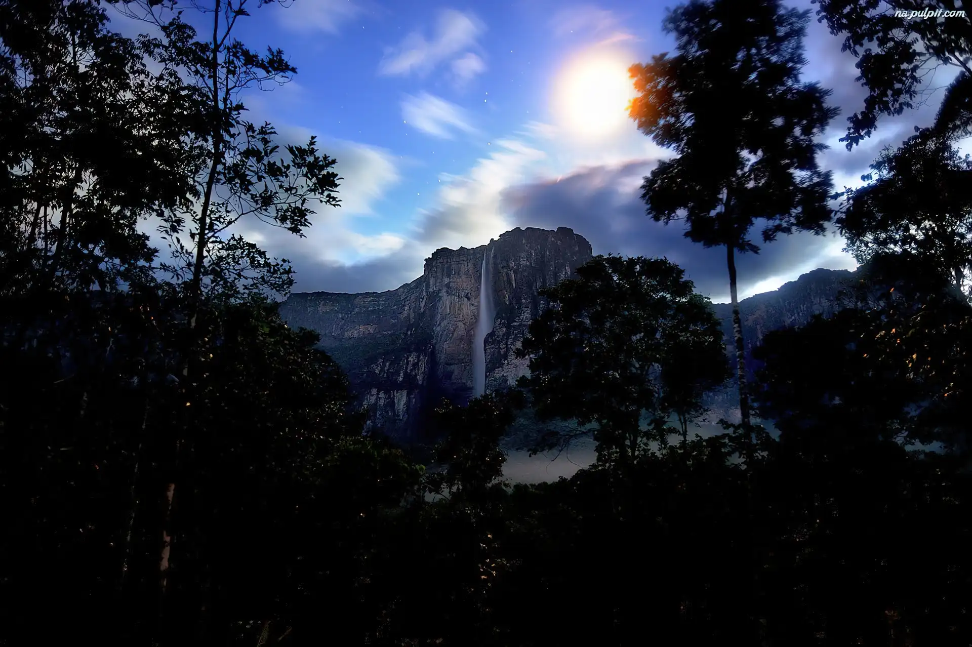 Wenezuela, Drzewa, Wodospad, Salto Angel