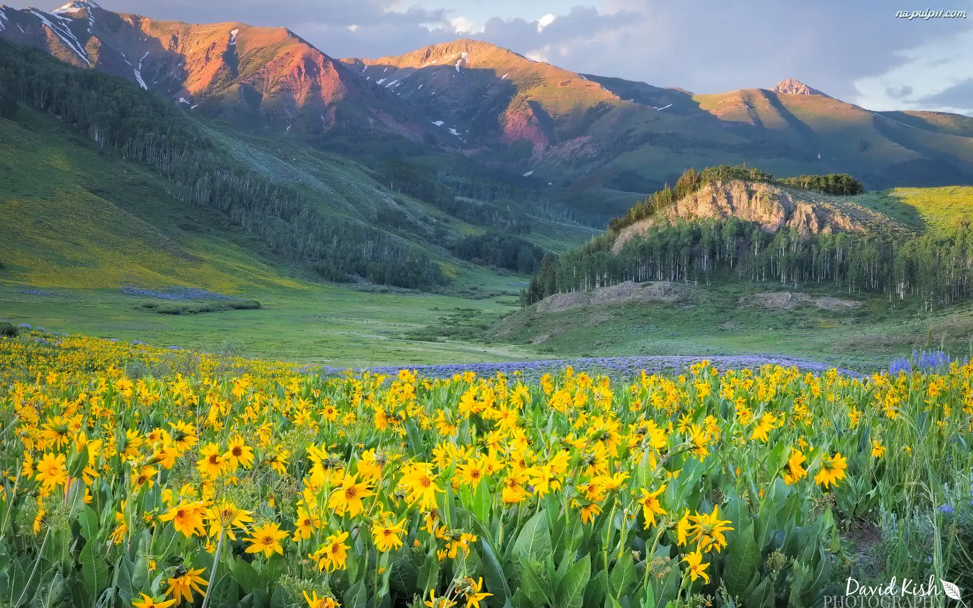 West Elk Mountains, Lasy, Wzgórze, Dolina, Kwiaty, Kolorado, Stany Zjednoczone, Drzewa, Góry, Żółte Na Pulpit |