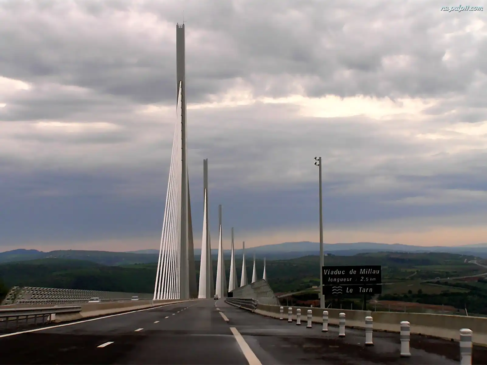 Wiadukt, Na, Świecie, Millau, Francja, Najwyższy Na Pulpit