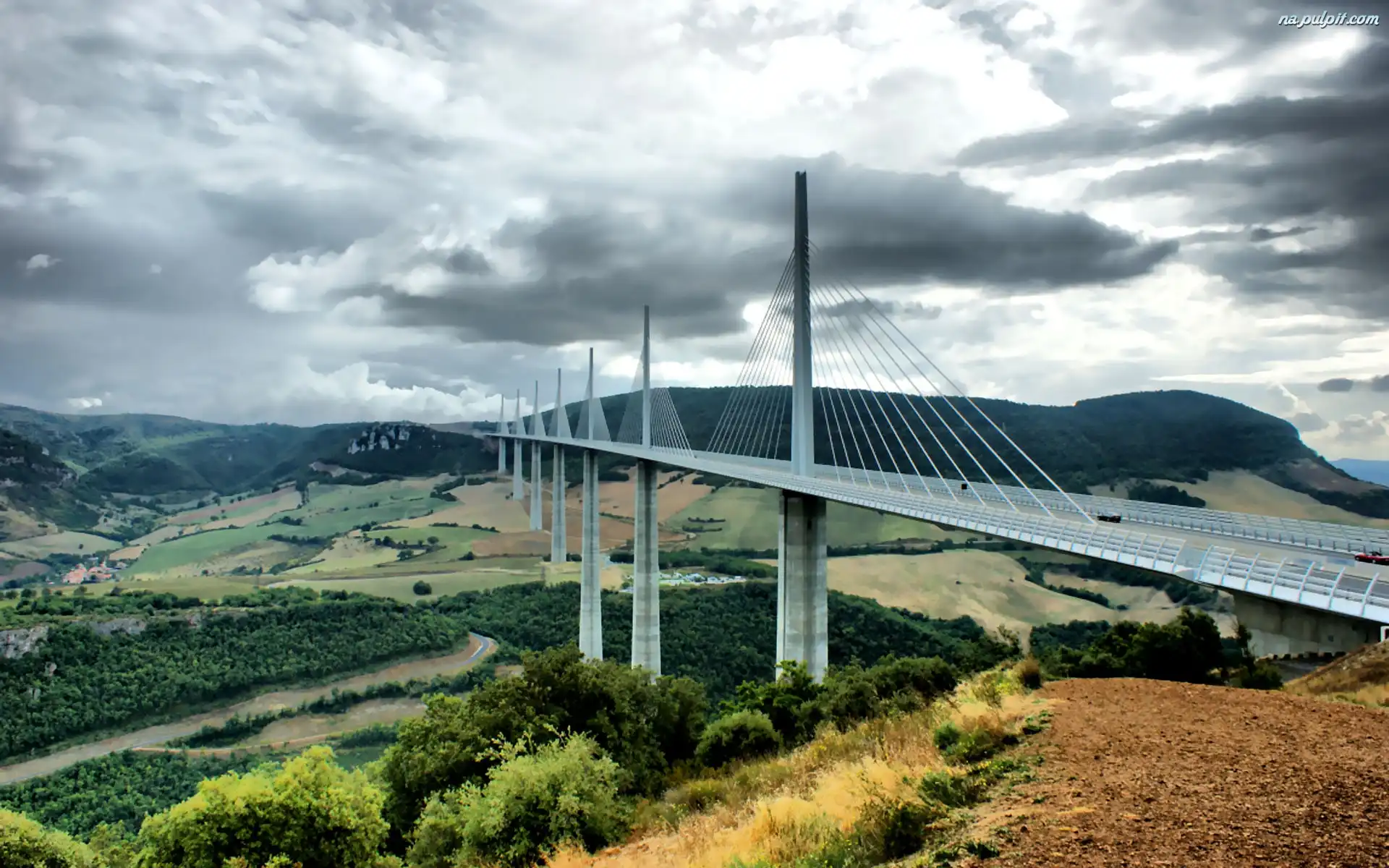 Tarn, Wiadukt, Rzeki, Nad, Millau, Francja, Doliną Na Pulpit