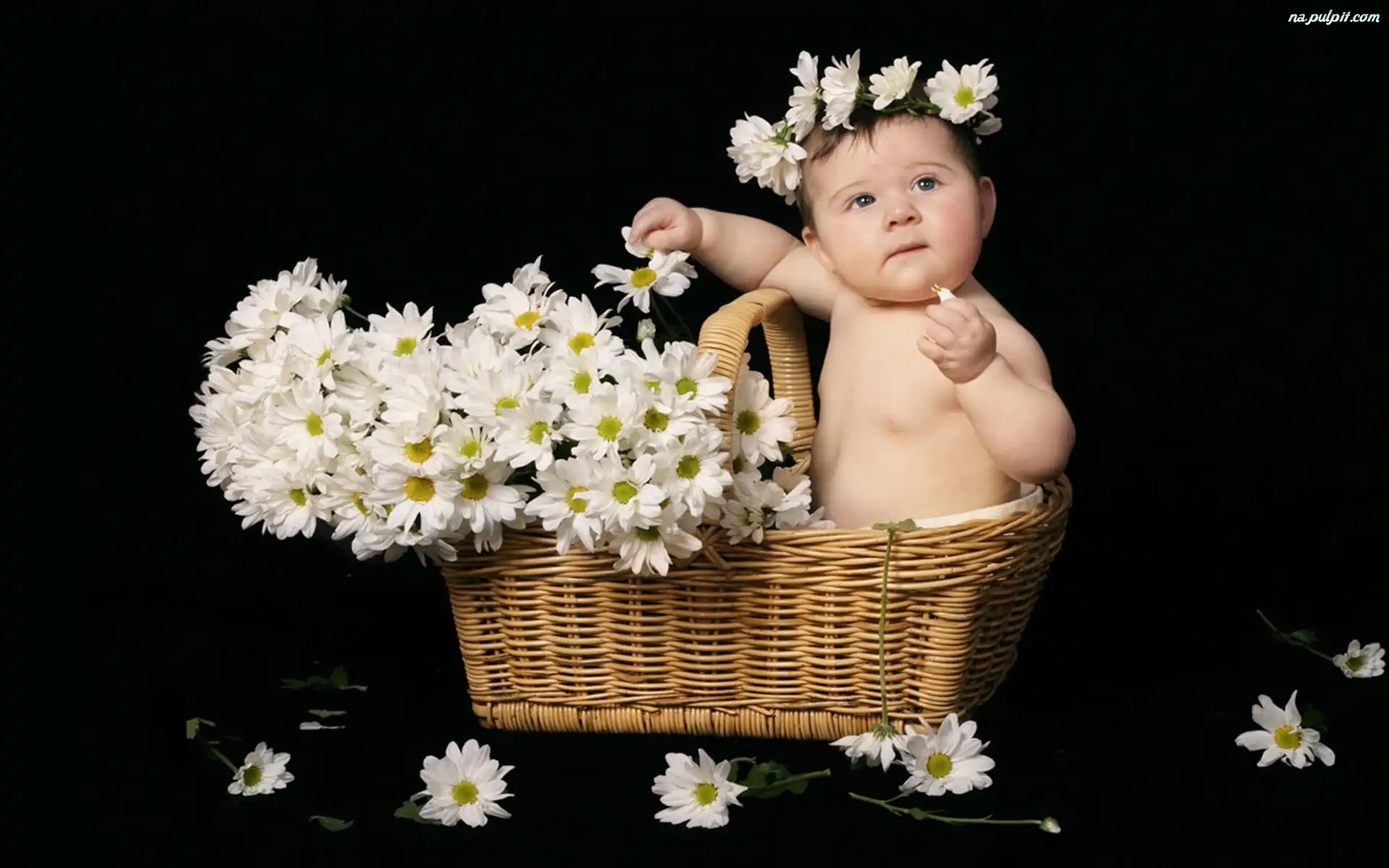 Wianek, Białe, Koszyk, Dziecko, Kwiaty