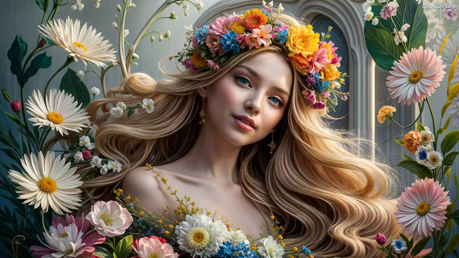 Kobieta, Blondynka, Kwiaty, Wianek Na Pulpit