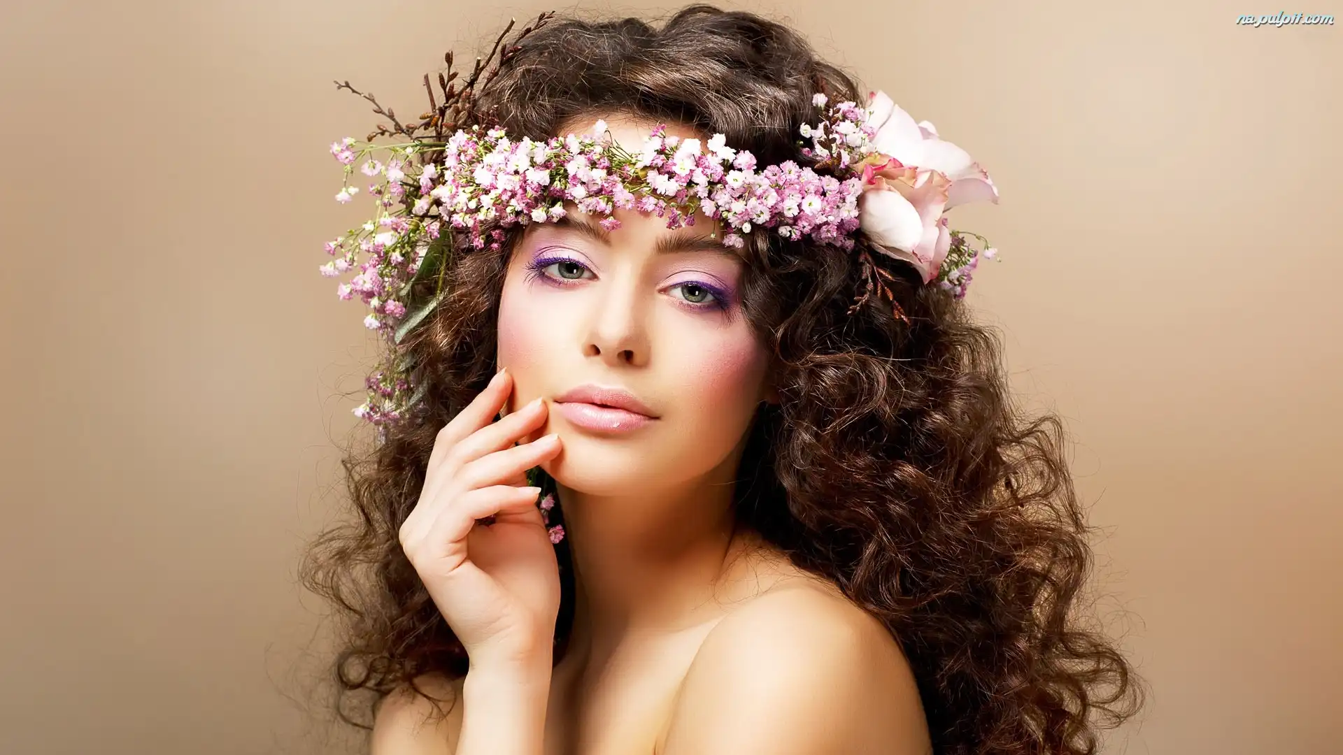 Wianek, Makijaż, Kobieta, Kwiaty