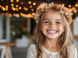 Kwiaty, Uśmiechnięta, Blondynka, Wianek, Dziewczynka, Światełka Na Pulpit