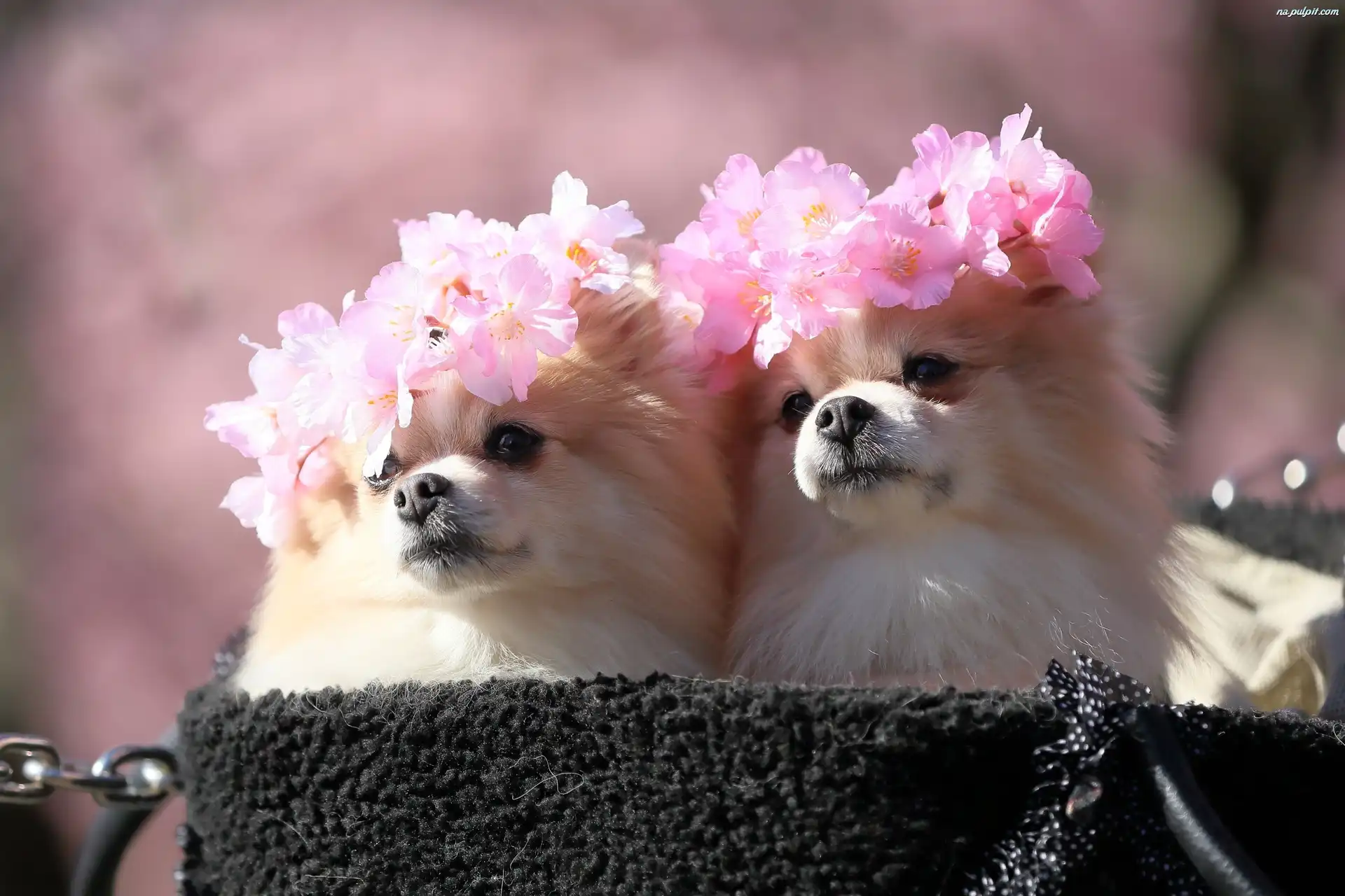 Wianki, Psy, Dwa, Szpice miniaturowe Na Pulpit