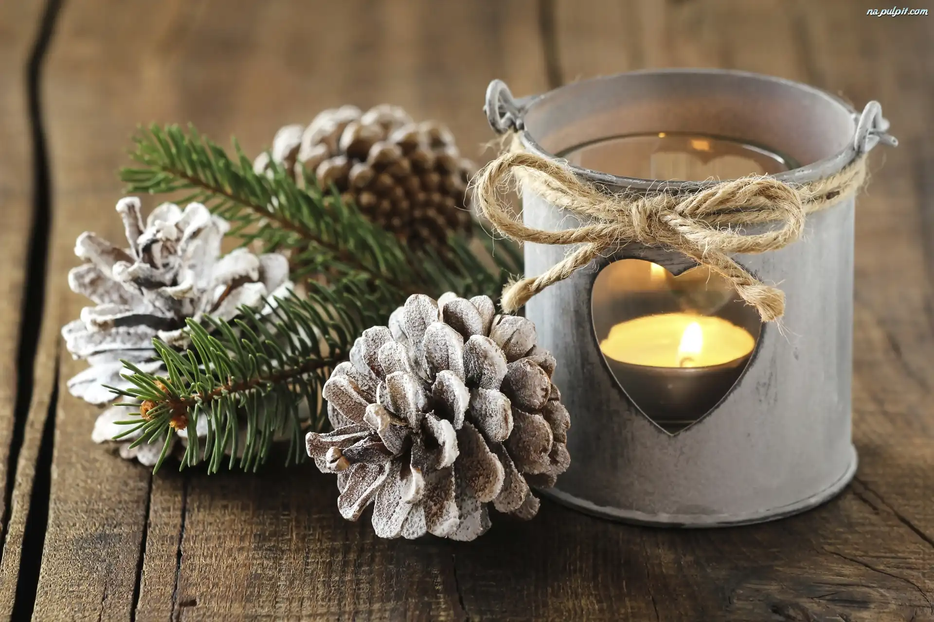 Świąteczna, Gałązki, Dekoracja, Świece, Szyszki, Świerkowe, Lampion
