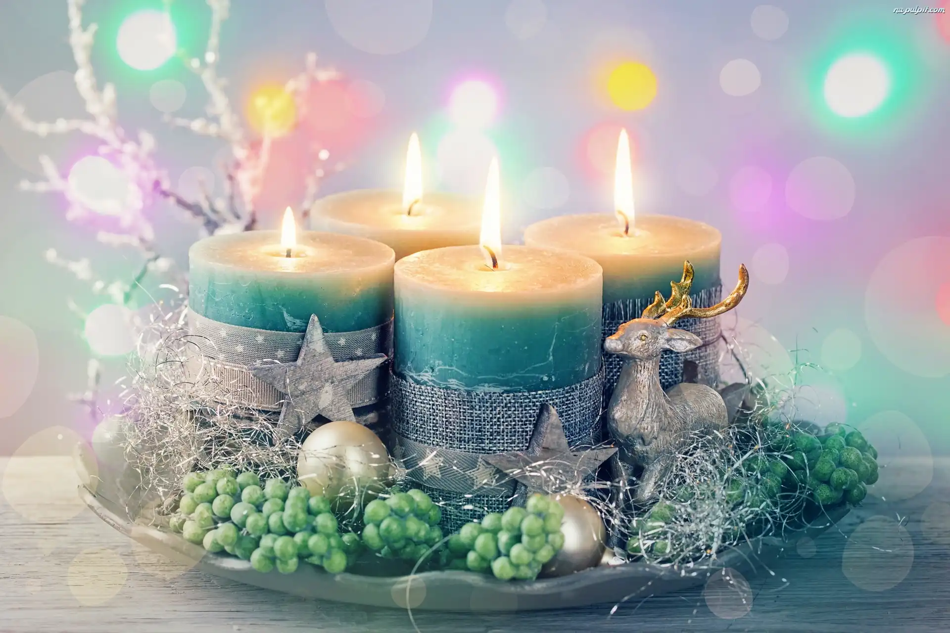 Świąteczne, Zielone, Boże Narodzenie, Dekoracja, Świeczki