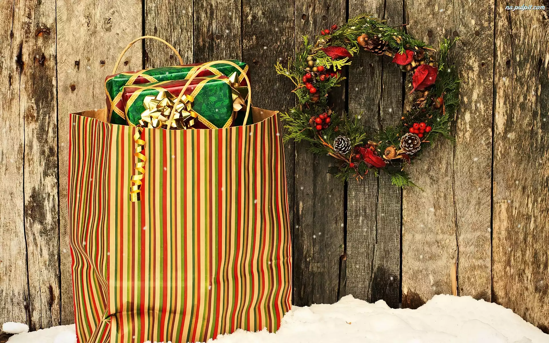 ÅšwiÄ…teczny, Åšciana, Åšnieg, Wianek, Prezenty, Drewniana