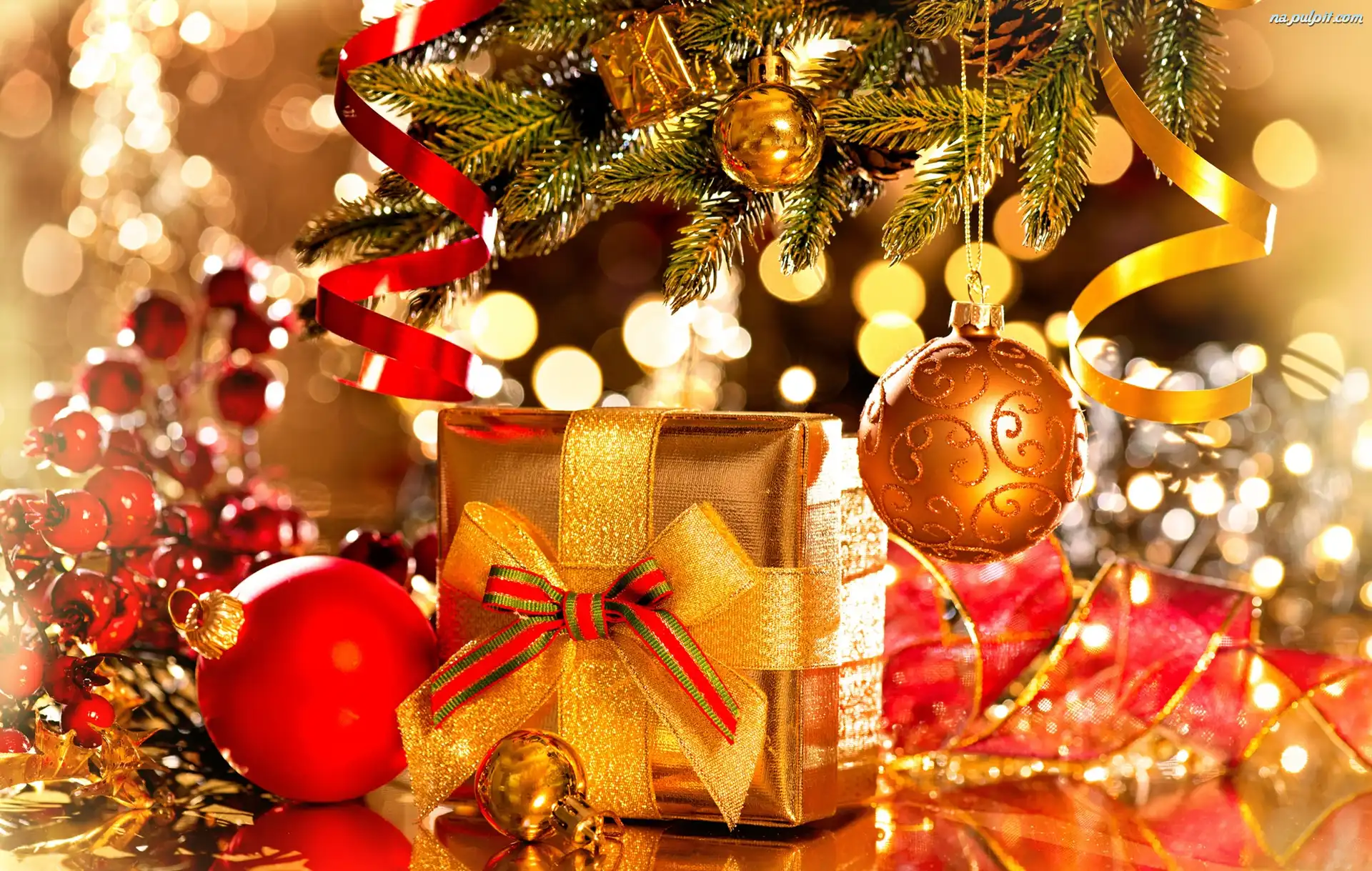 Świąteczny, Wstążka, Kompozycja, Prezent, Boże Narodzenie, Bombki Na Pulpit
